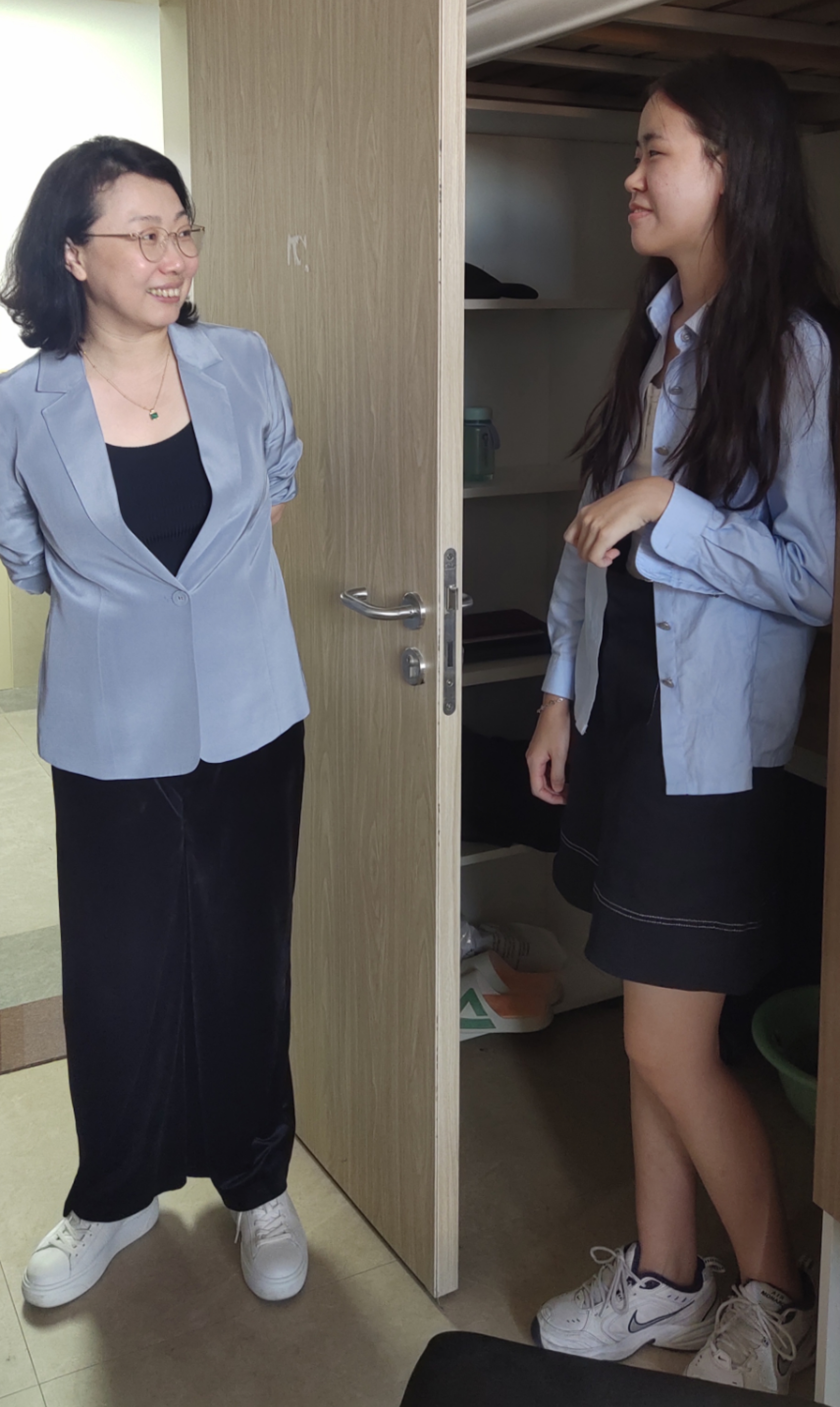 新学期伊始,新葡萄官网院长潘海英、党委副书记徐杰和辅导员林明帅于8月24日带队走访了2023级研究生新生宿舍。
