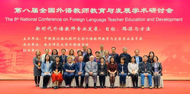 "第八届全国外语教师教育与发展学术研讨会“于2019年10月25日-27日在南京市江苏省会议中心顺利召开。该会议由中国英汉语比较研究会外语教师教育与发展委员会主办、南京师范大学外国语学院承办、外语教学与研究出版社、上海外语教育出版社、上海沃动科技有限公司协办。会议主题为“新时代外语教师专业发展:目标、路径与方法”。来自海内外500多位从事外语教师教育研究的高校教师、教育工作者、研究生以及从事基础外语教育的中小学教师和教研员等参加了这次会议。新葡萄官网战菊、张凤娟、李晔、鲍春荣四位英语教师出席了大会并宣读了论文。