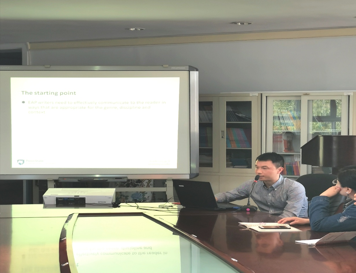 2019年5月29日下午,应新葡萄8883官网AMG的邀请,美国宾夕法尼亚州立大学应用语言学系研究生部主任、博士生导师陆小飞教授在外语楼报告厅做了题为“Towards the synergy of genre-based and corpus-based approaches to academic writing research, pedagogy and assessment”的学术报告。讲座由新葡萄8883官网AMG姜峰教授主持。