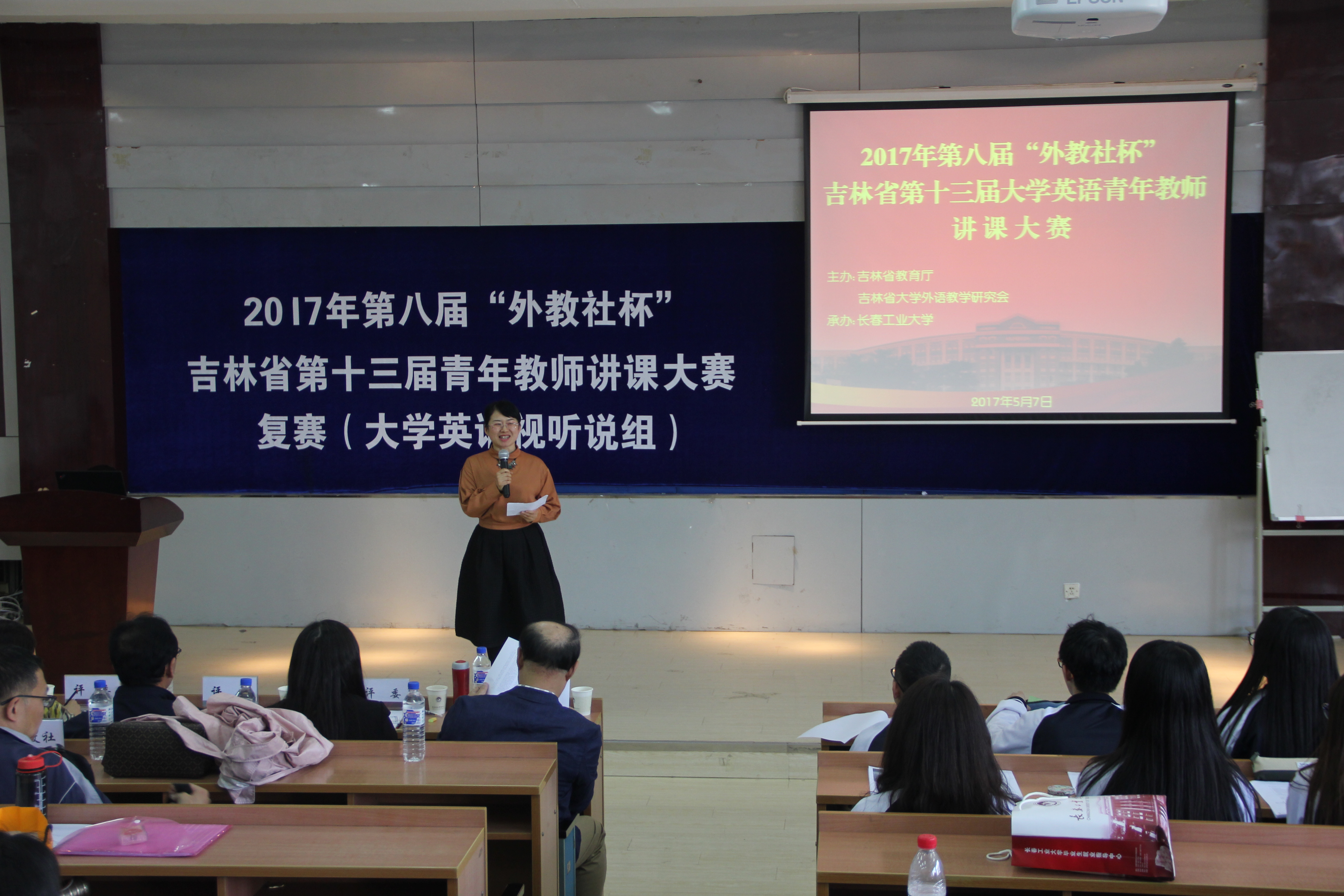 由教育部高等学校大学教学指导委员会、教育部高等学校外国语言文学类专业教学指导委员会、教育部职业院校外语类专业教学指导委员会、上海外语教育出版社主办,吉林省教育厅高教处、吉林省大学外语教学研究会协办的第八届“外教社杯”吉林省第十三届大学英语青年教师讲课大赛决赛于2017年5月6日-7日在长春工业大学举行。