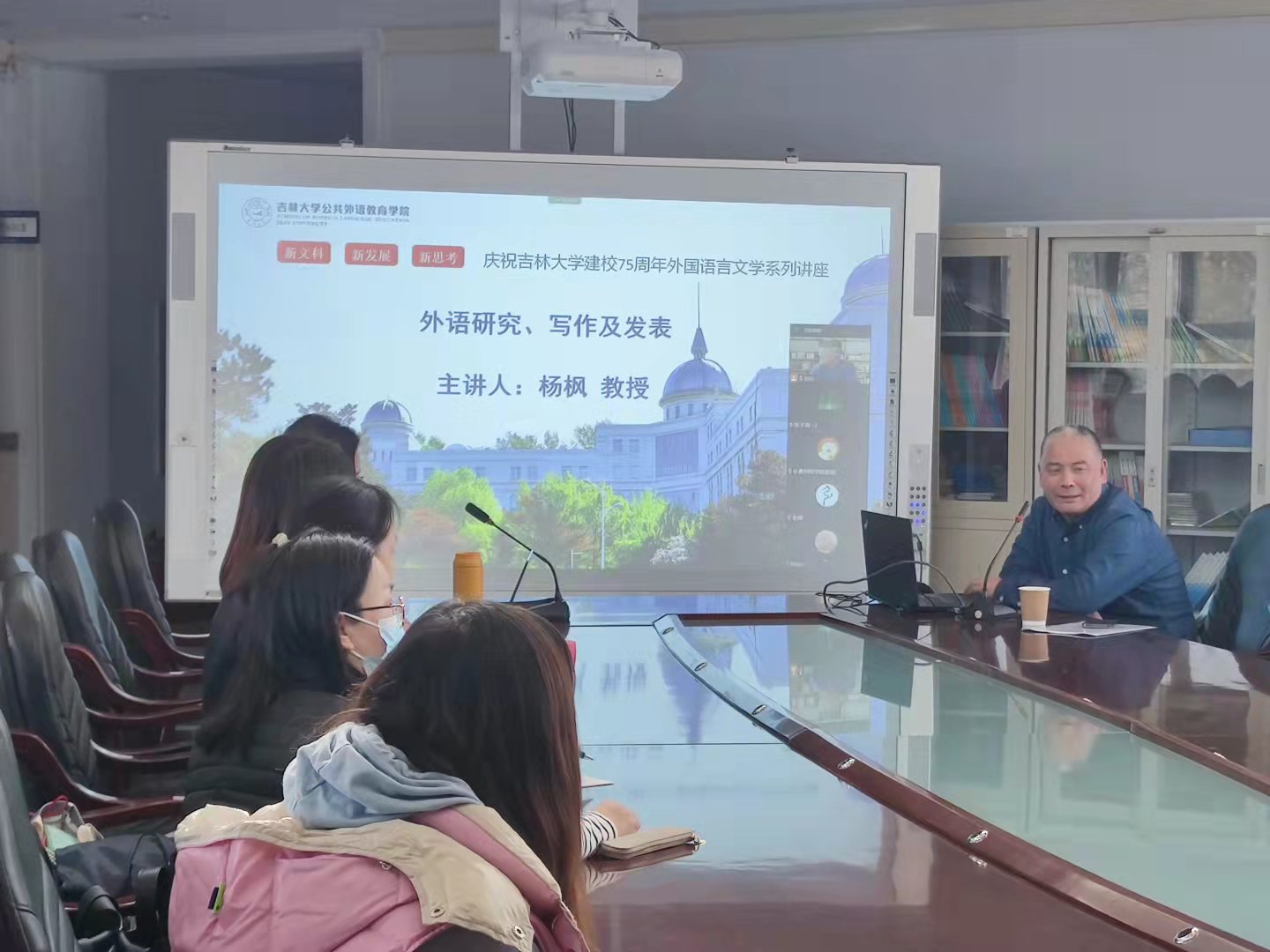 2021年10月13日,上海交通大学外国语学院教授、《当代外语研究》主编杨枫教授应邀访问新葡萄官网,并在外语楼六楼报告厅举办了题为“外语研究、写作及发表”的学术讲座。该讲座为新葡萄官网“新文科、新发展、新思考”庆祝新葡萄8883官网AMG建校75周年外国语言文学系列讲座第一场。本次讲座由院长潘海英教授主持,张锦副院长和新葡萄官网教师、研究生共同参加了本次讲座。