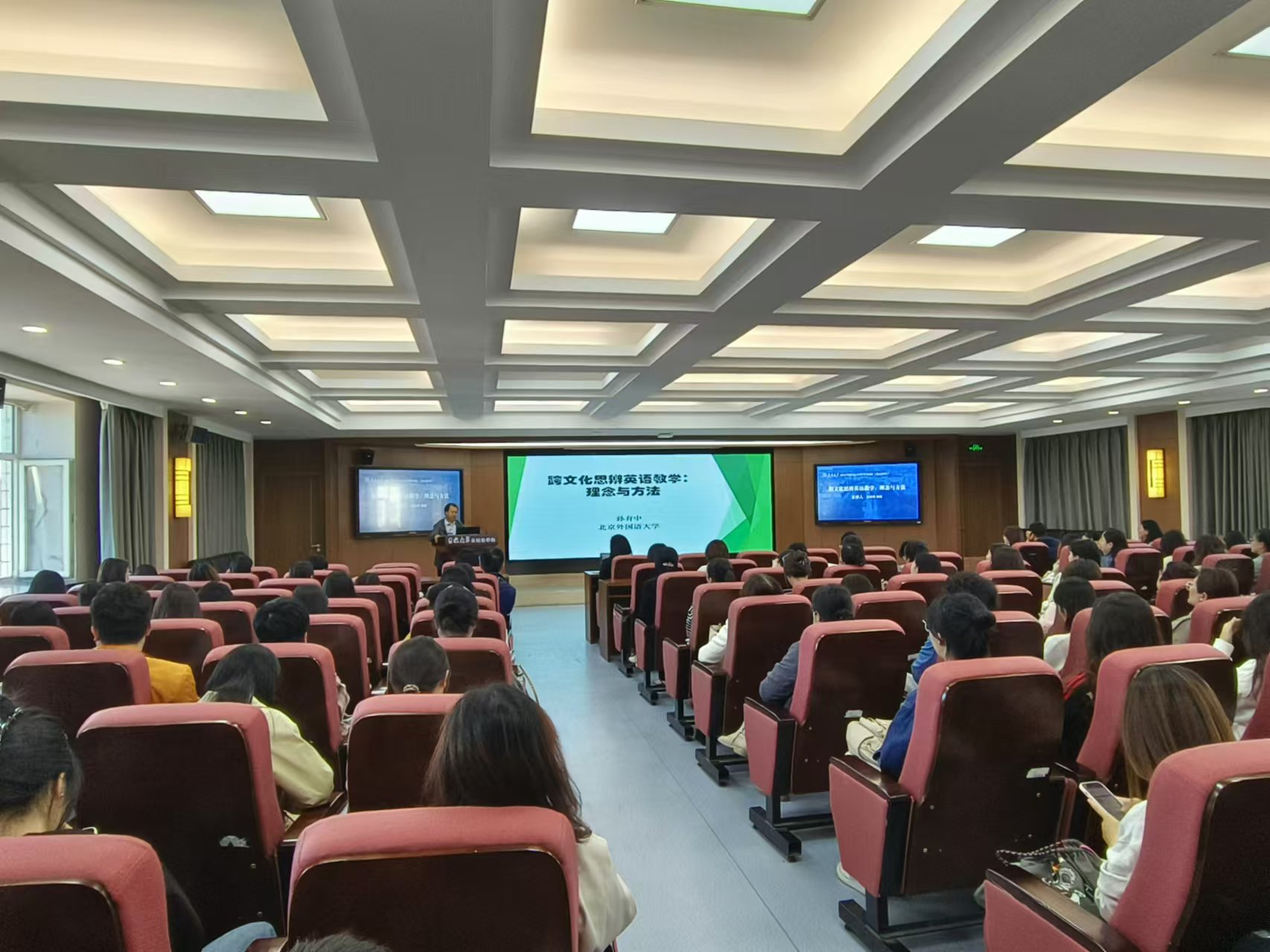 讲座伊始,孙有中教授从外语教学中的思辨能力和跨文化能力培养入手,探讨了人工智能赋能外语教学新形势下两种能力的重要性及如何将两种能力培养融入英语课堂教学。